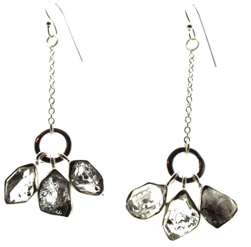 Herkimer Diamond Gemstone Sterling Silver Fishhook Earrings