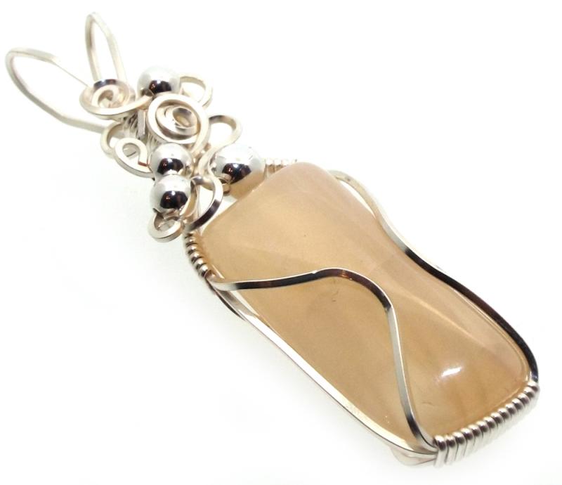 Indian Moonstone Gemstone Silver Plated Wrapped Pendant 02