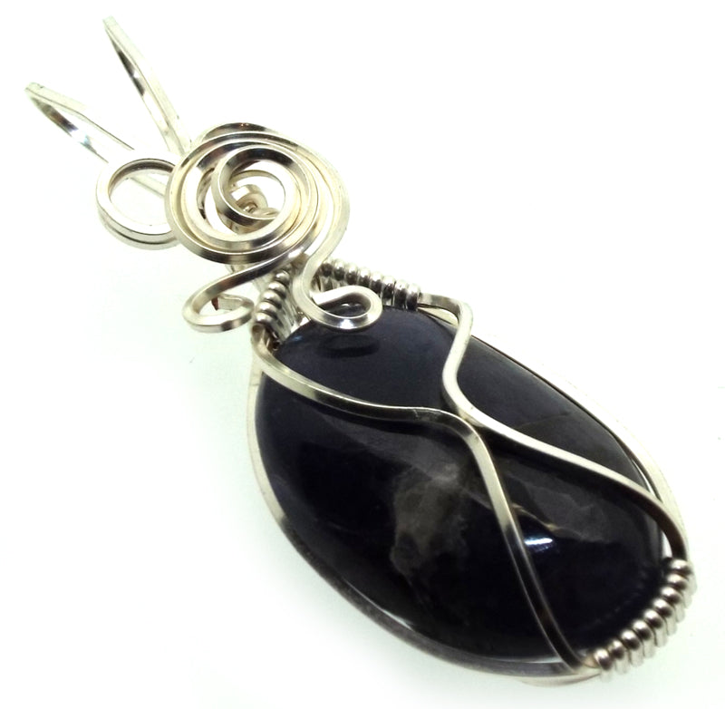Iolite Gemstone Silver Plated Wire Wrapped Pendant 06