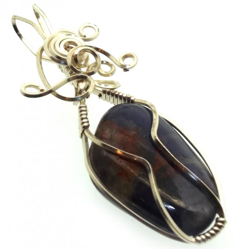 Iolite Gemstone Silver Plated Wire Wrapped Pendant 08