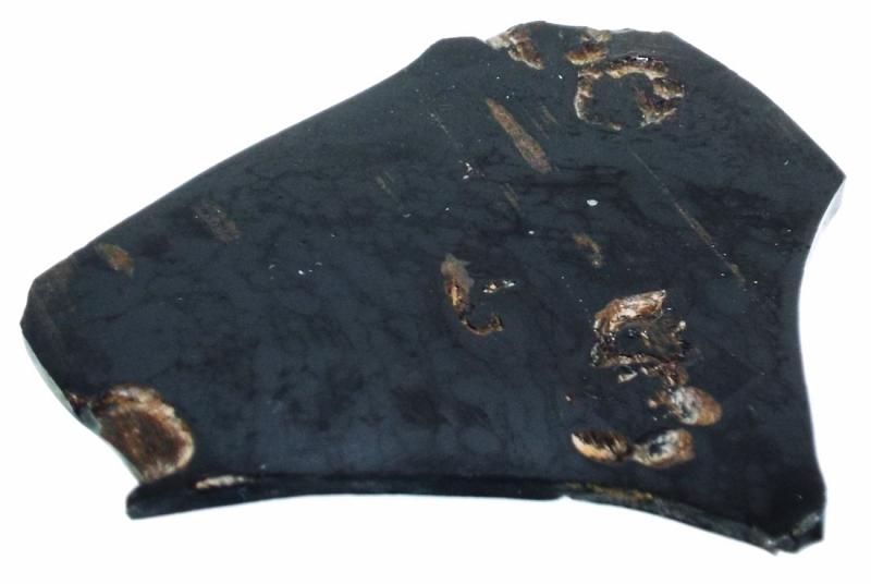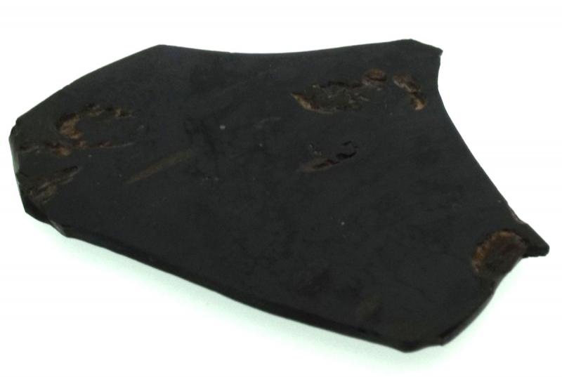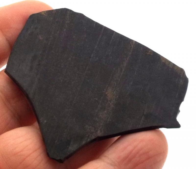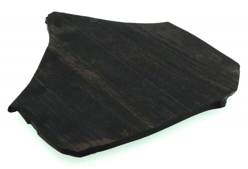 Jet slice polished on one side measuring 46 mm deep 56 mm wide 2 mm tall. You will receive the pictured specimen.