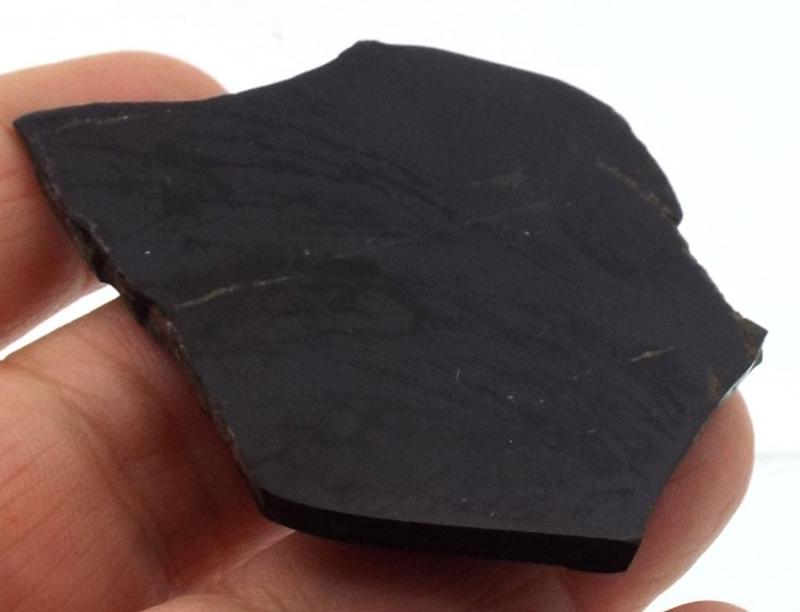 Jet slice polished on one side measuring 42 mm deep 60 mm wide 4 mm tall. You will receive the pictured specimen.