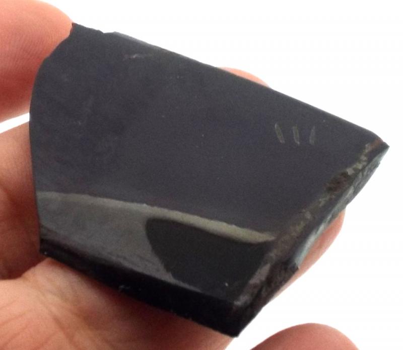 Jet slice polished on one side measuring 36 mm deep 47 mm wide 3 mm tall. You will receive the pictured specimen.