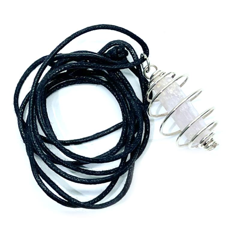 Genuine Pink Kunzite raw Gemstone encased in a silver plated spiral cage.