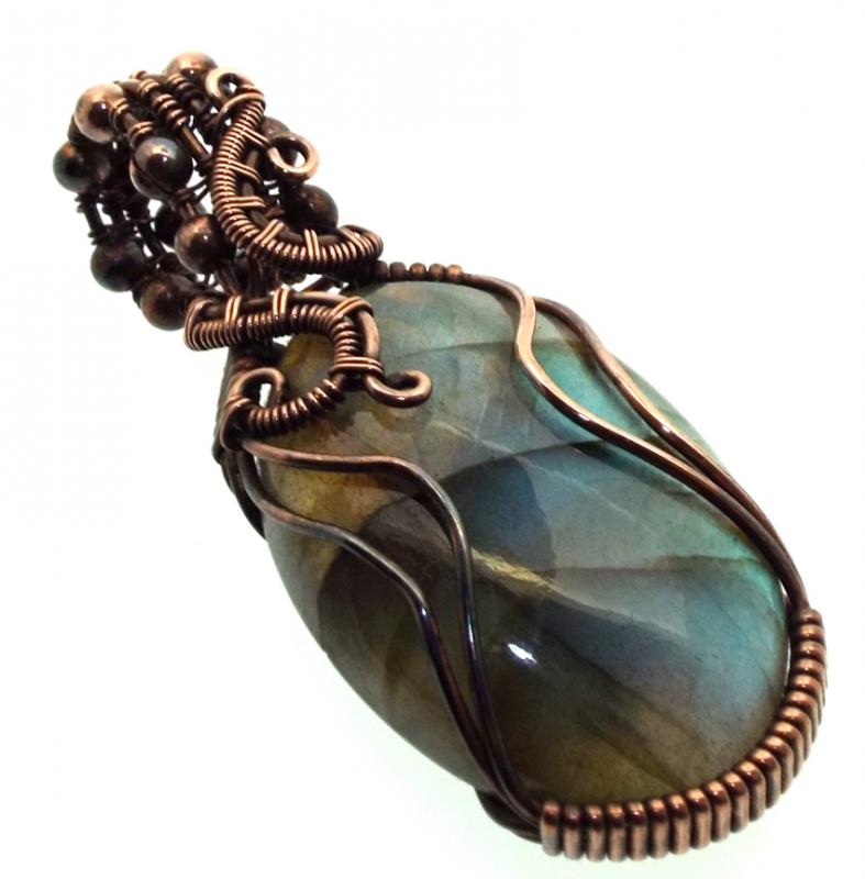 Labradorite Gemstone Copper Wire Weave Pendant 19