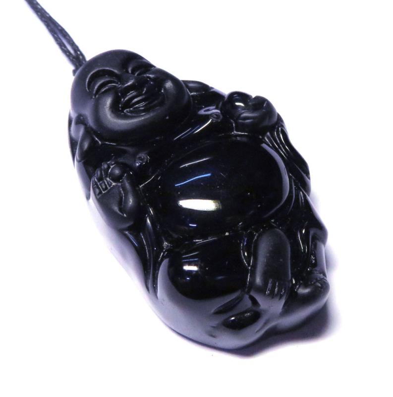 Carved Obsidian pendant. Measures Approx 50x16mm, supplied with a long waxed cotton cord.