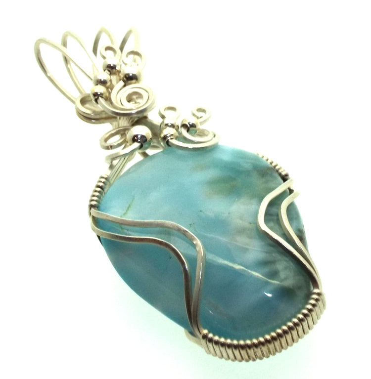 Larimar Gemstone Sterling Silver Wire Wrapped Pendant 02