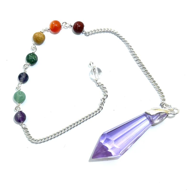 Lavender Coloured Glass Crystal Point Chakra Pendulum