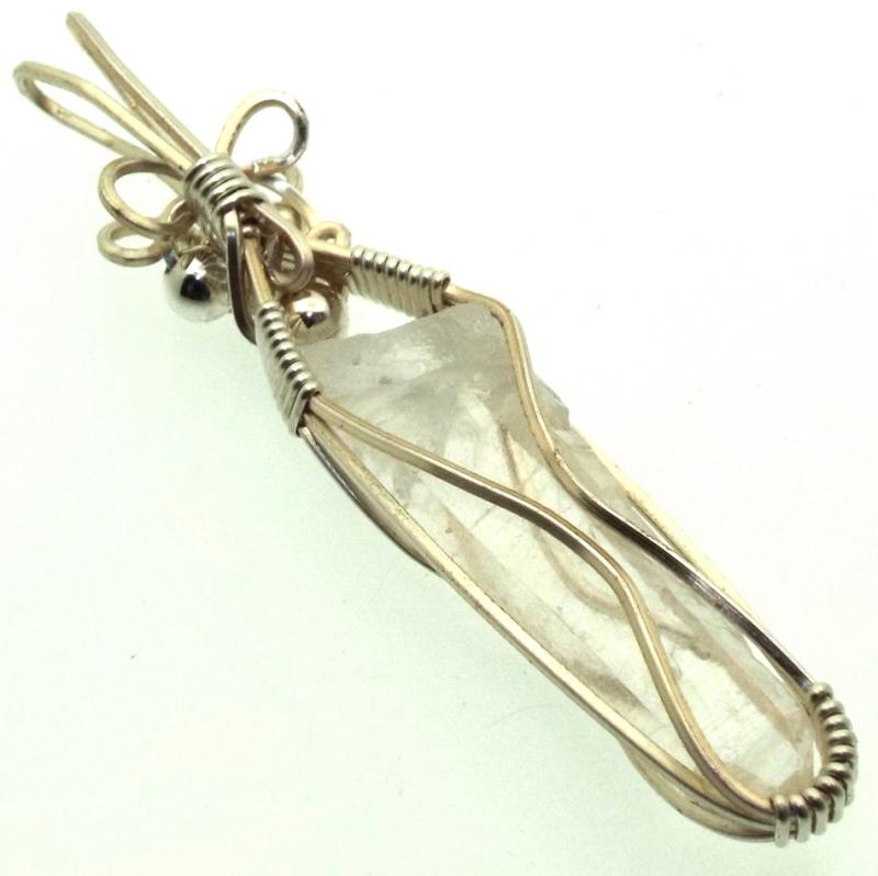 A natural Lemurian Quartz point, wire wrapped with sterling silver wire.