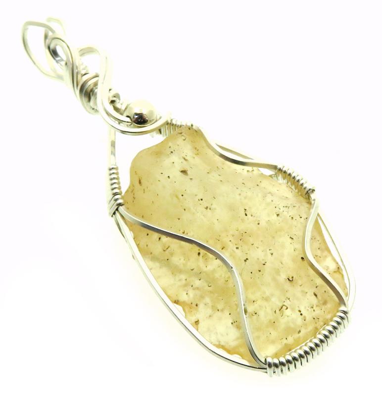 Libyan Desert Glass Sterling Silver Wire Wrapped Pendant 01