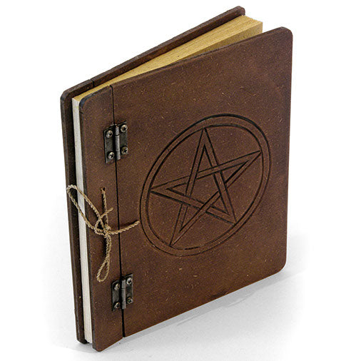 This rustic looking note pad is perfect for using on the go, recycled plain paper is encased in a sturdy thick board and decorated with a pentacle carving.