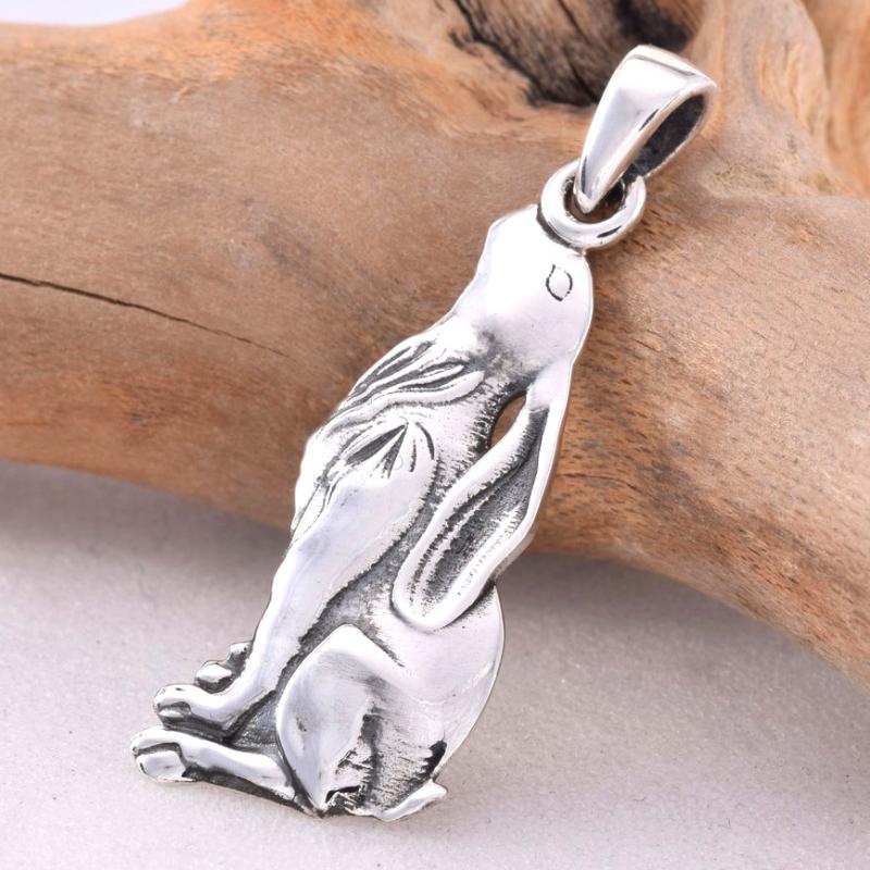 Moongazing Hare Sterling Silver Pendant