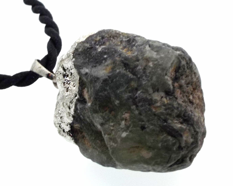 The Chrysoprase is Electroplated with silver coloured metal securely bonding it to the Crystal.