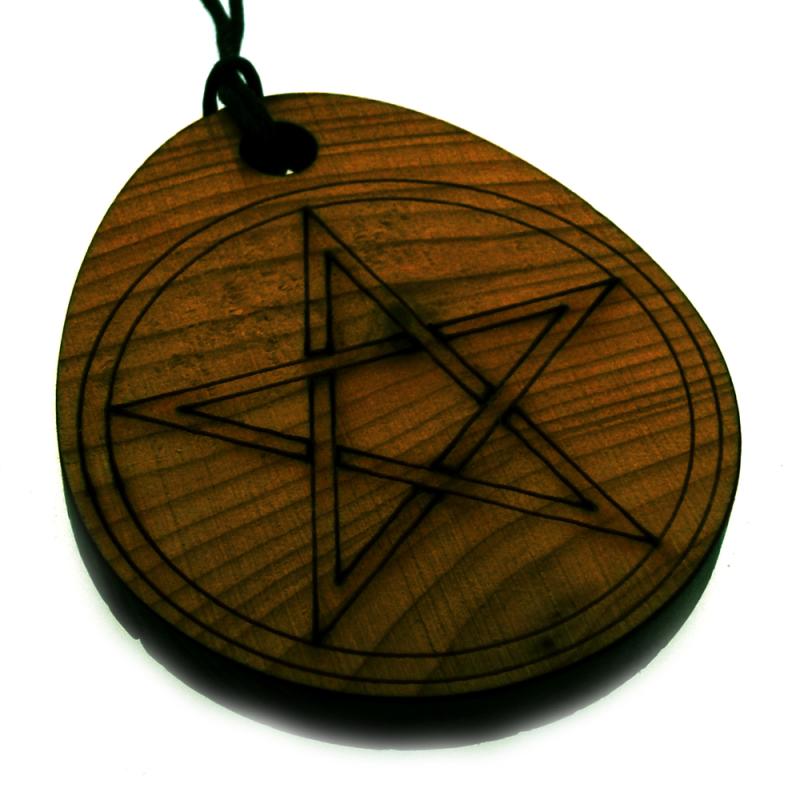 The Pentacle is a Wiccan and Pagan symbol also used in witchcraft. The five points of the star represent the elements (Earth, Air, Fire, Water) and the circle is the Ether (Spirit).