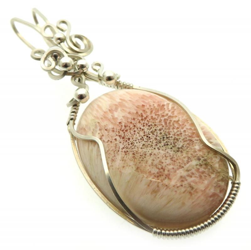 Pink Scolecite Sterling Silver Wire Wrapped Pendant 02