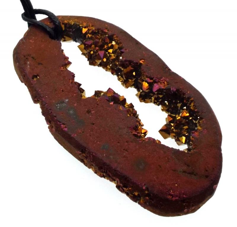 Purple Aura Quartz Freeform Geode Slice Pendant 01