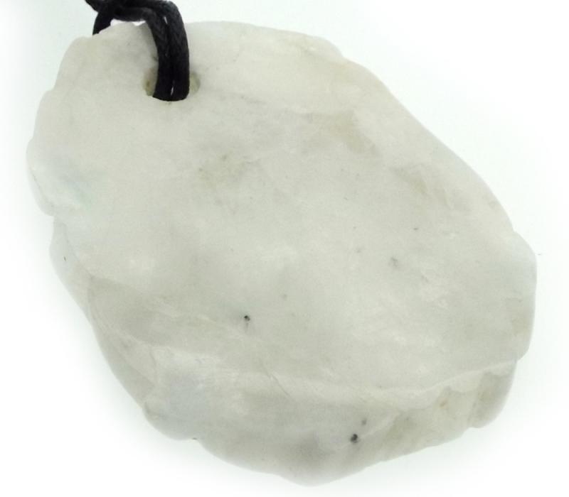 Rainbow Moonstone Gemstone slice pendant measuring 45 mm long 34 mm wide 5 mm deep, supplied with an adjustable waxed cotton cord.