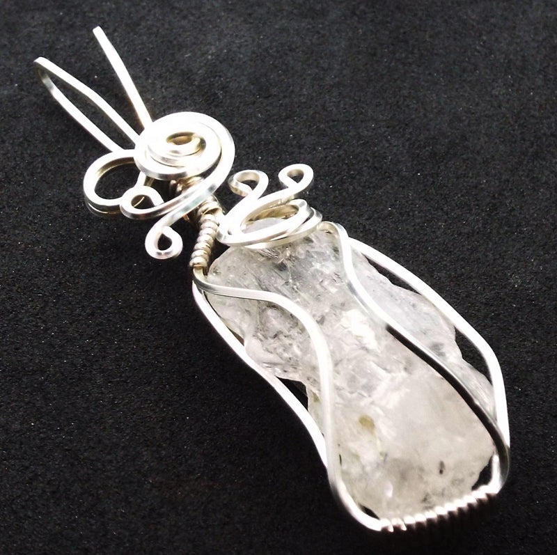 Raw Topaz Gemstone Silver Plated Wire Wrapped Pendant 02