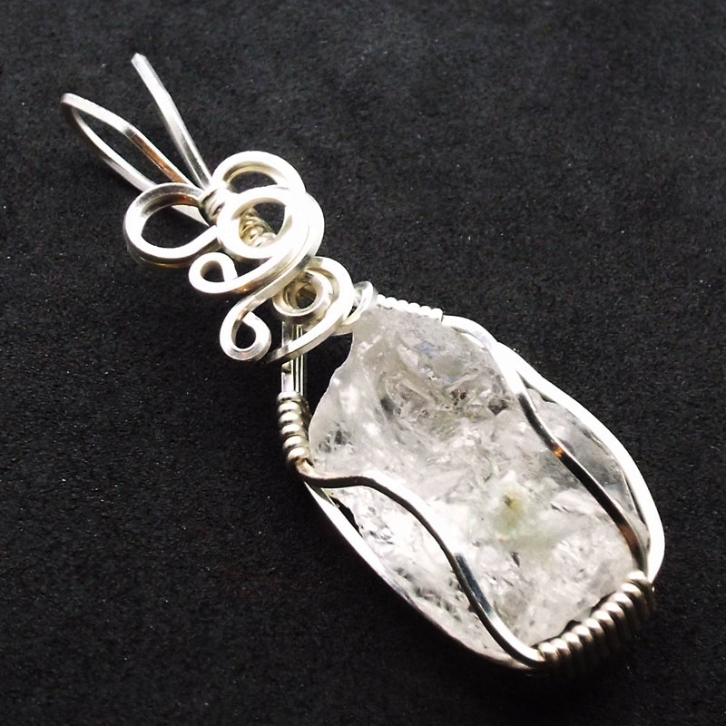 Raw Topaz Gemstone Silver Plated Wire Wrapped Pendant 08
