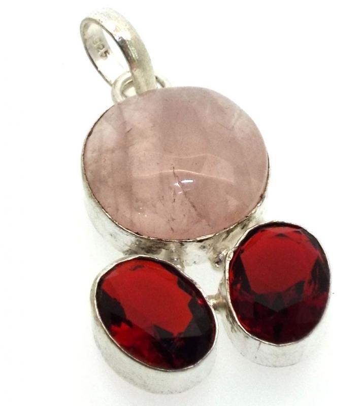 Rose Quartz and Garnet Indian Silver Pendant 01