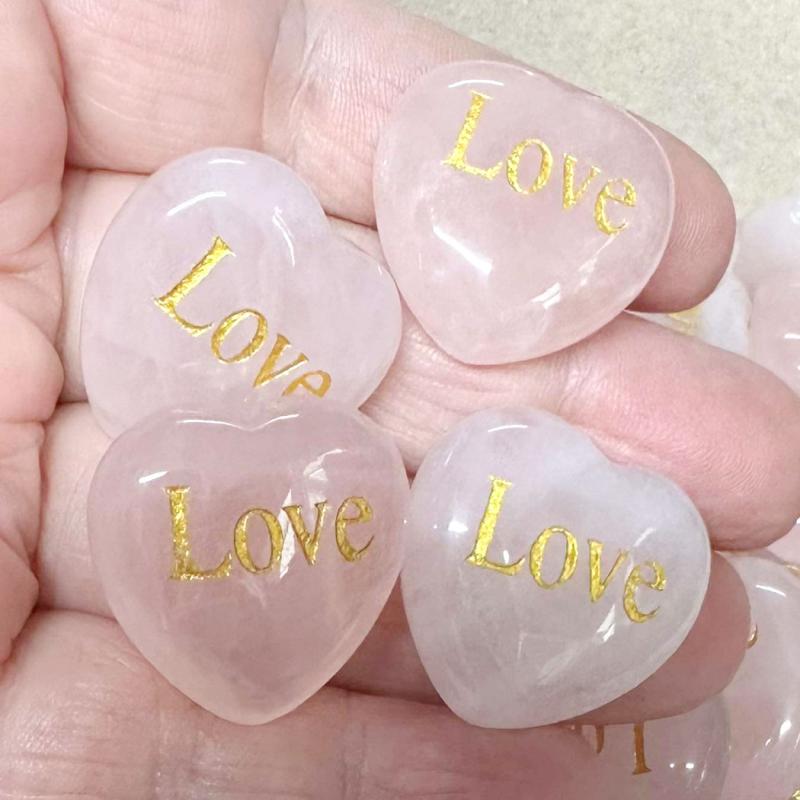 A cute mini genuine Gemstone heart measuring approx 25x25x10mm sold individually. The word 'LOVE' is carved into one side of the heart