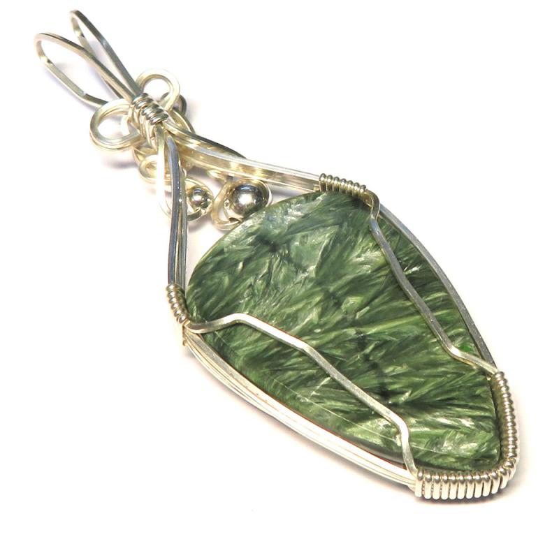 Seraphinite Gemstone Sterling Silver Wire Wrapped Pendant 04