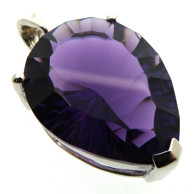 Faceted Siberian Amethyst Quartz pendant measures 20 mm long x 15 mm wide x 9 mm deep and is made with Sterling Silver components.