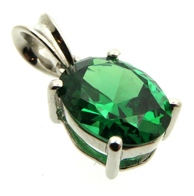 Faceted Siberian Emerald Quartz pendant measures 10 mm long x 7 mm wide x 5 mm deep and is made with Sterling Silver components.