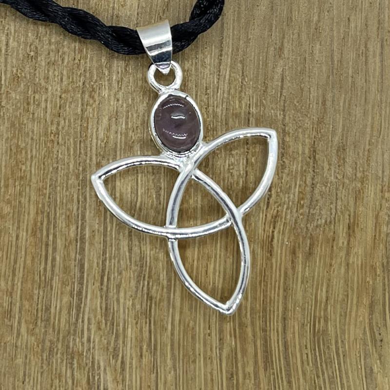 Silver Coloured Metal Triquetra with Amethyst Pendant