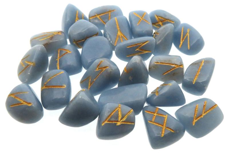 Small Angelite Etched Gemstone Elder Futhark Rune Set with Booklet