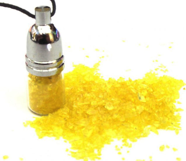 The small glass bottle can be opened easily to remove the contents because the pendant contains a screw on / screw off metal cap.