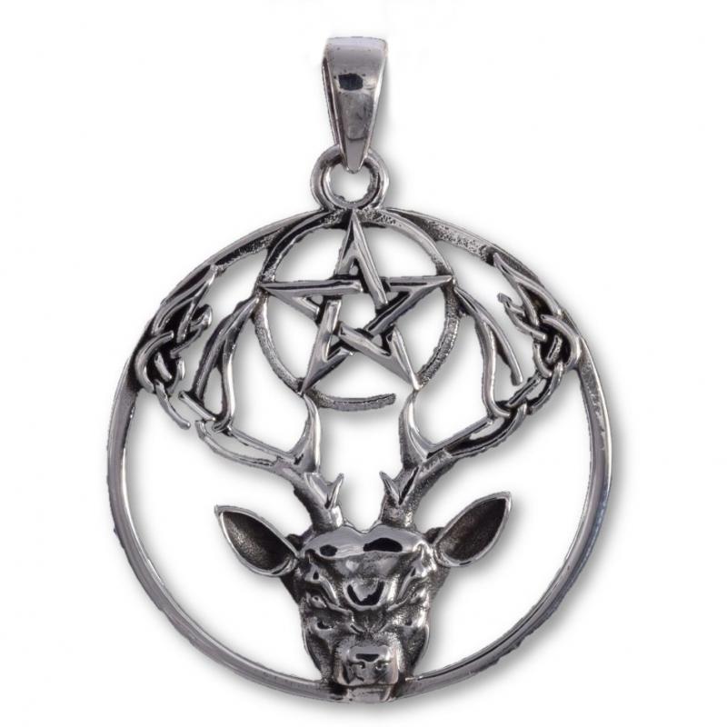 Solid Sterling Silver 925 hallmarked pendant that Measures Approx 24x30mm. The stag and pentacle design is by Seventh Sense. Supplied with a long waxed cotton cord.