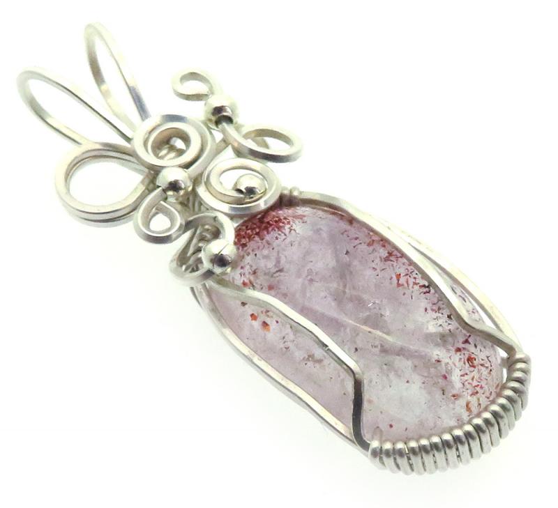 A Super 7 gemstone, wire wrapped with sterling silver wire.