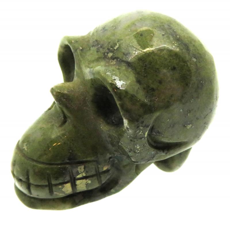 A single Tintagel Serpentine skull carving measuring approx 32mm wide 49mm deep 34mm tall.