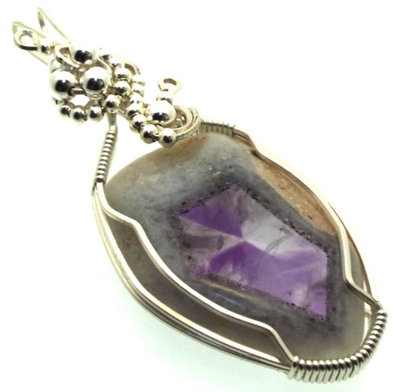 A Tripache Star Amethyst slice, wire wrapped with silver plated anti tarnish wire.