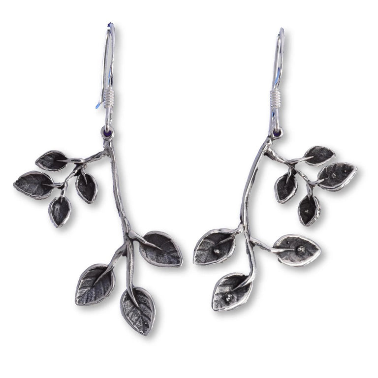 A pair of vine design silver earrings, with silver fishhook fittings. Measures approx 27x20mm.