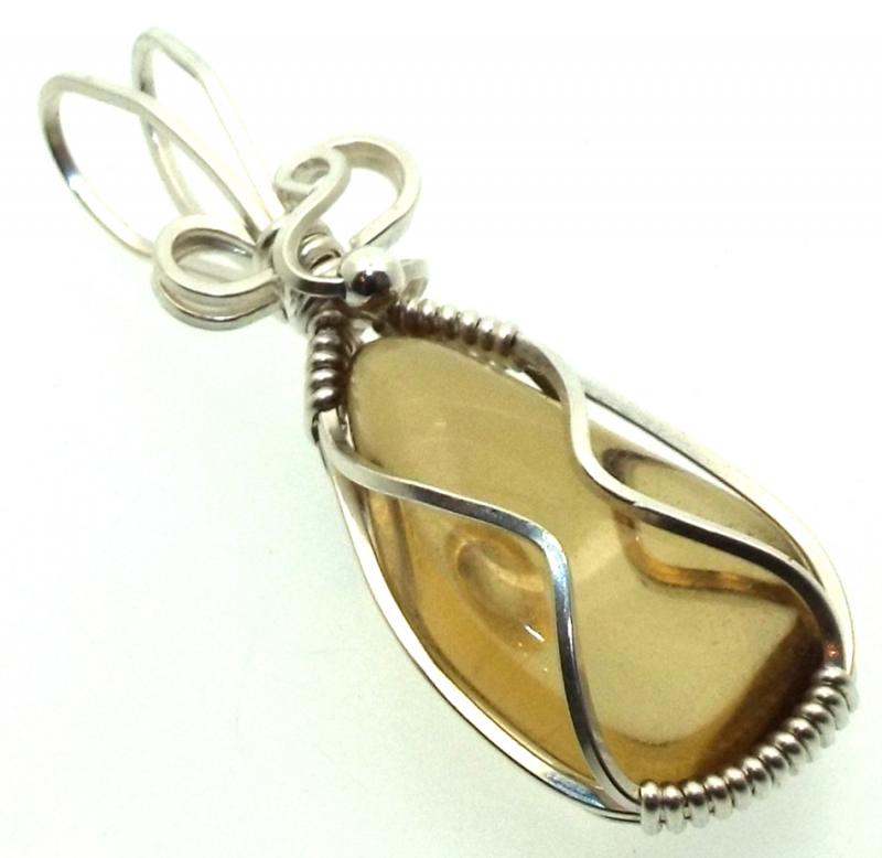 Whiskey Quartz Sterling Silver Wire Wrapped Pendant 01
