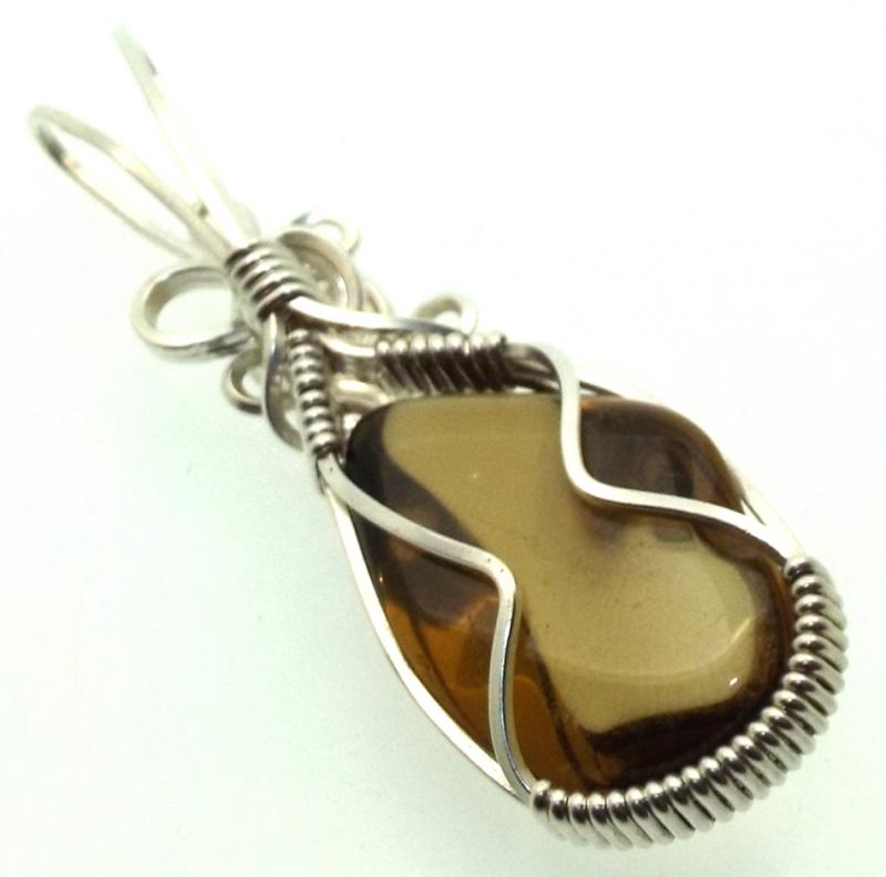Whiskey Quartz Sterling Silver Wire Wrapped Pendant 04