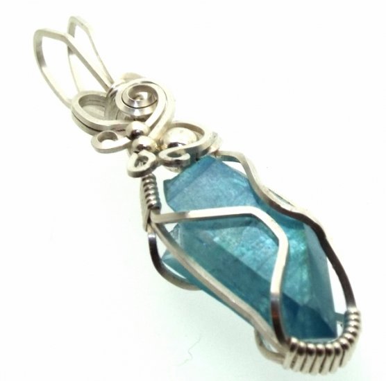 Aqua Aura Quartz Sterling Silver Wire Wrapped Pendant 03