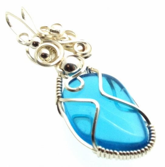 Blue Obsidian Silver Filled Wire Wrapped Pendant 06