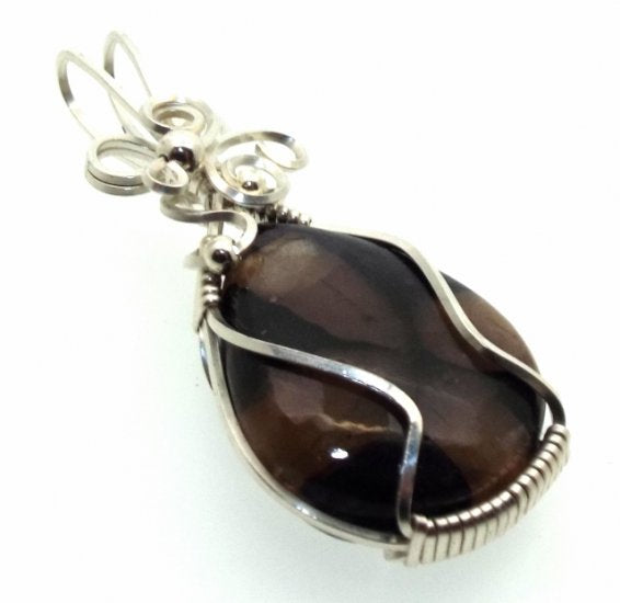 A Chiostolite cabochon wire wrapped with silver filled anti tarnish wire.