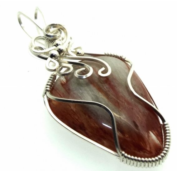 A Copper Rutilated Quartz cabochon, wire wrapped with sterling silver wire.