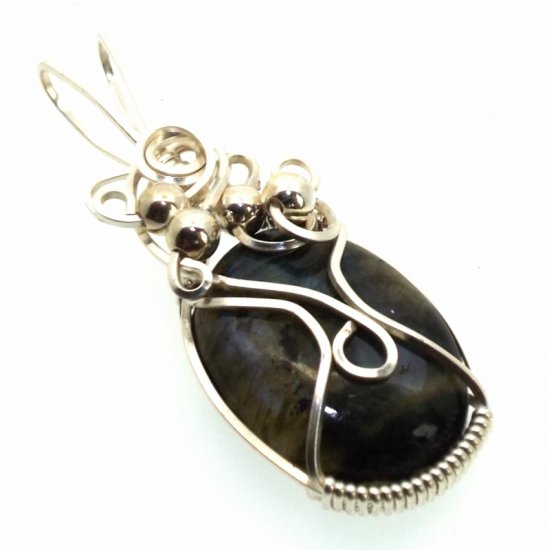 Labradorite Gemstone Silver Plated Wire Wrapped Pendant 06
