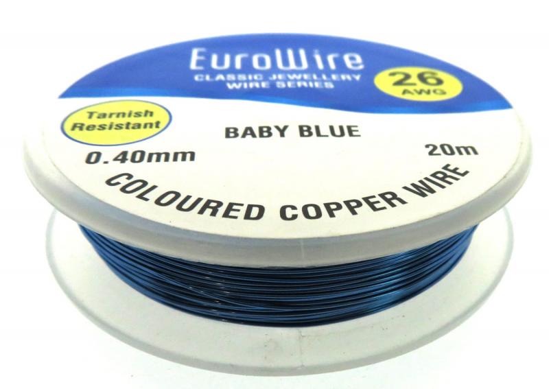 0.4mm Round Baby Blue Coloured Copper Non Tarnish Wire, 20m length. (26AWG)