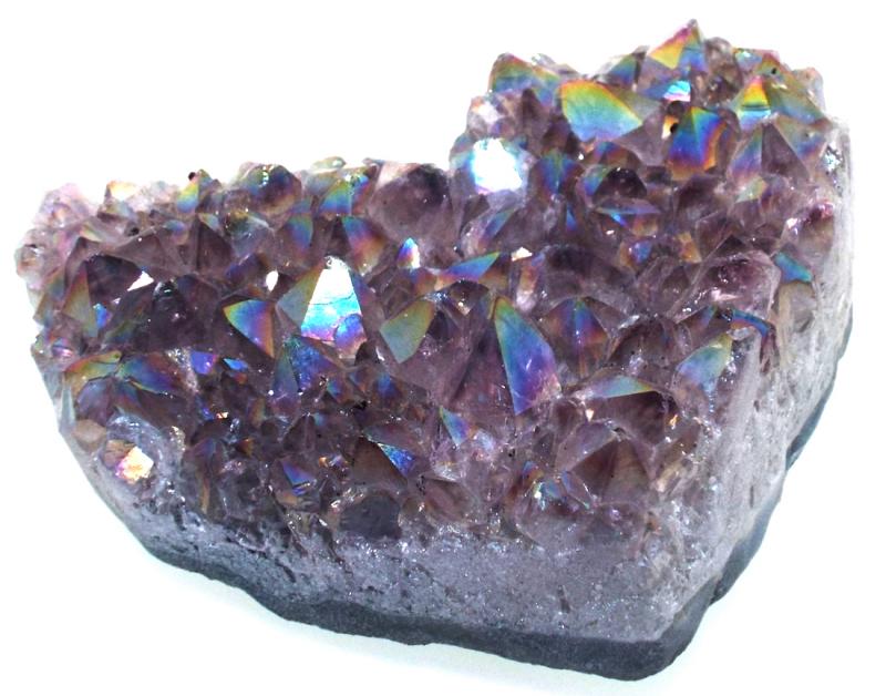 Amethyst Aura is created by bonding Platinum and Magnesium to the Crystal creating an iridescent colourful sheen.