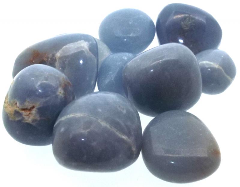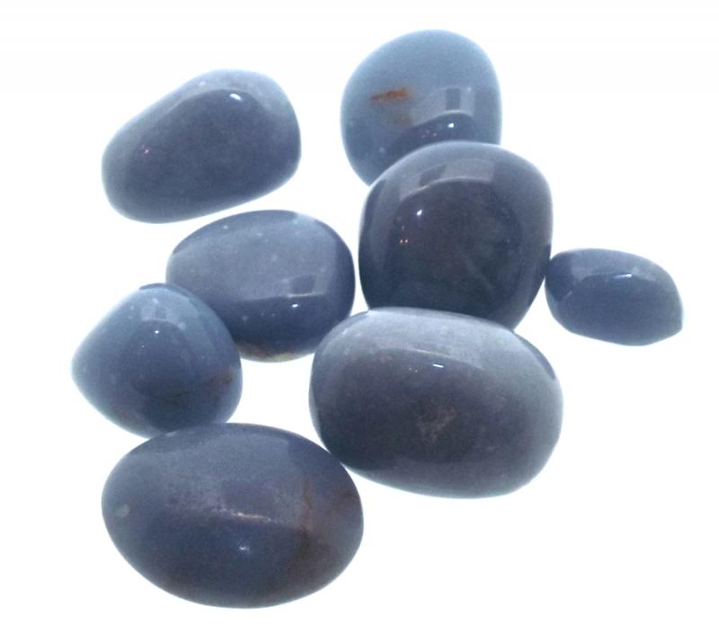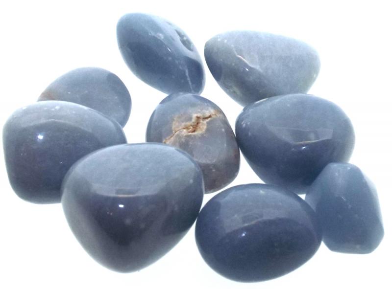 A 50gms pack of Angelite Tumbled Gemstones measuring approx 15mm to 20mm.