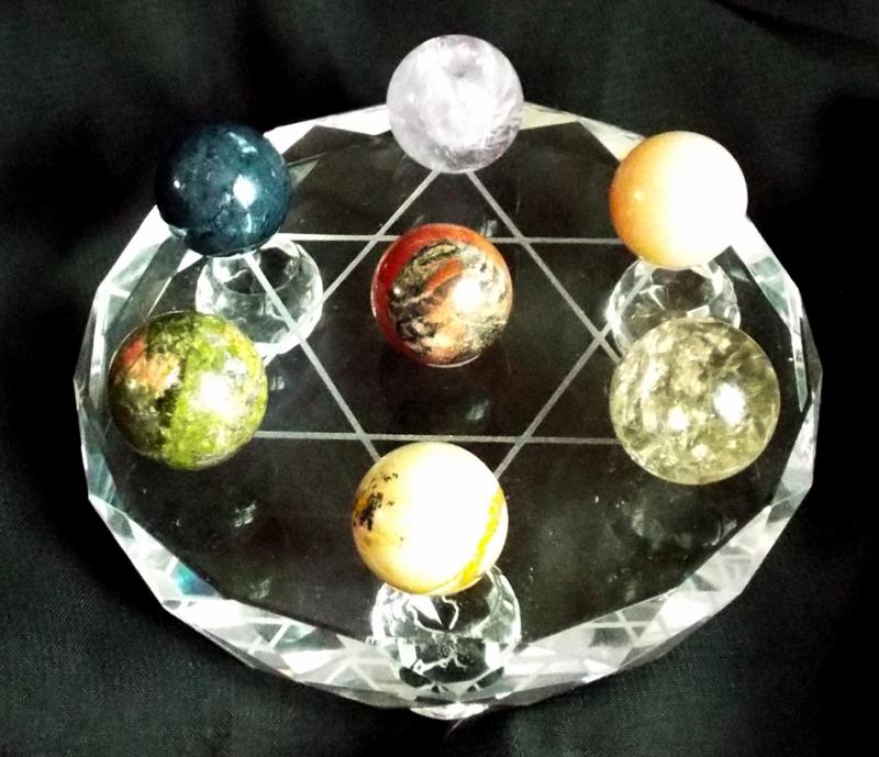 Glass Crystal Healing Grid with Seven Gemstone Spheres