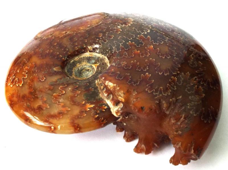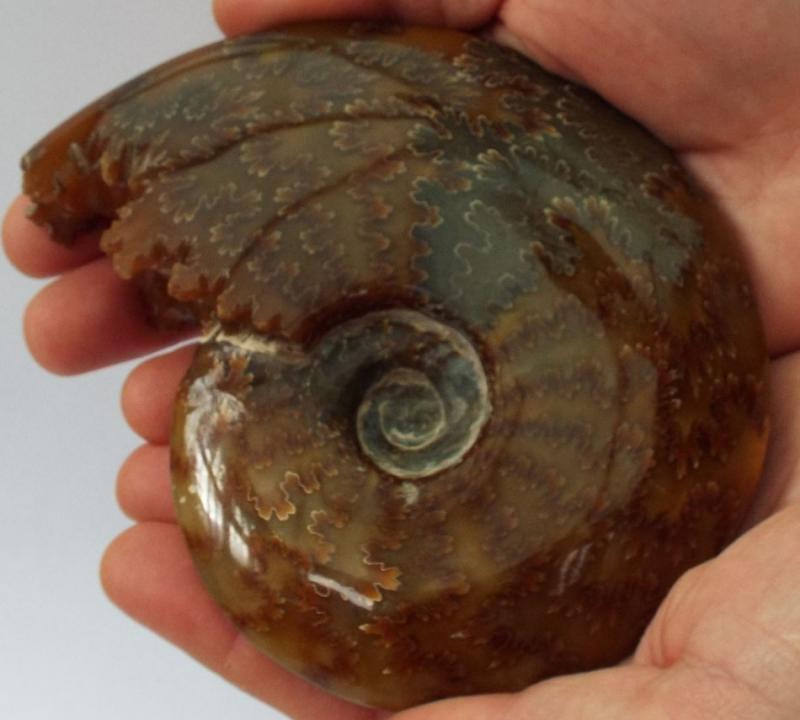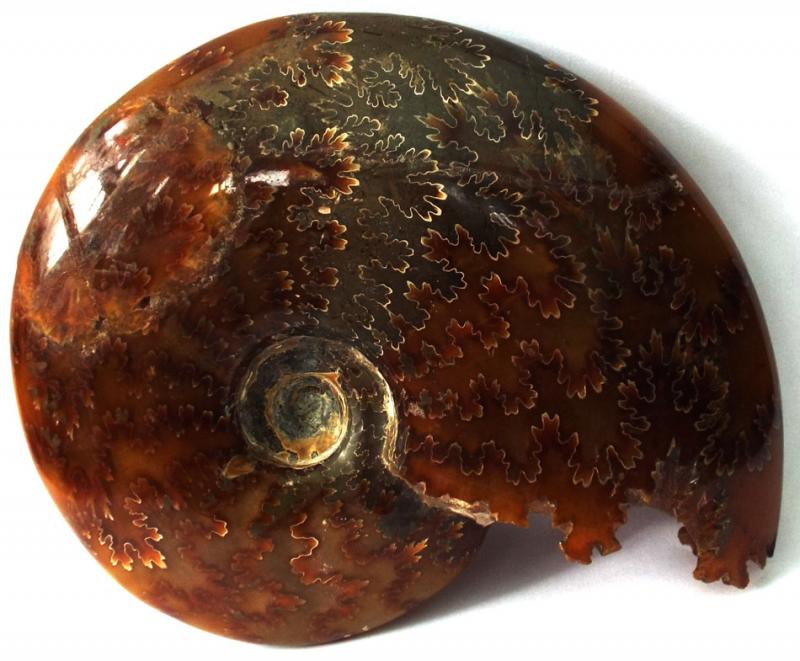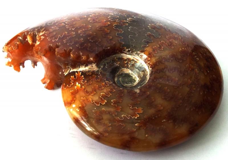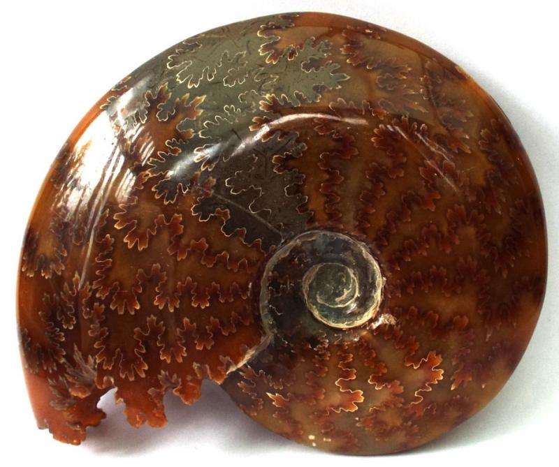 Ammonite is the fossilized shell of an extinct mollusc related to the octopus family millions of years old, this has been highly polished to reveal the chambers inside.