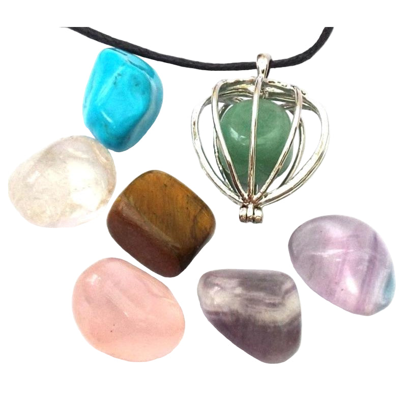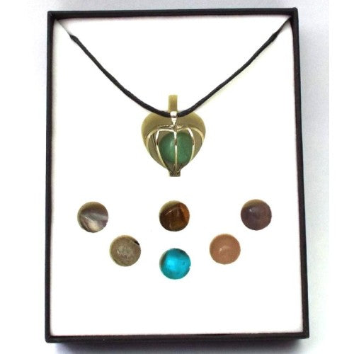 A pretty heart shaped cage locket that opens so you can wear any of the seven supplied Gemstones depending on your mood.