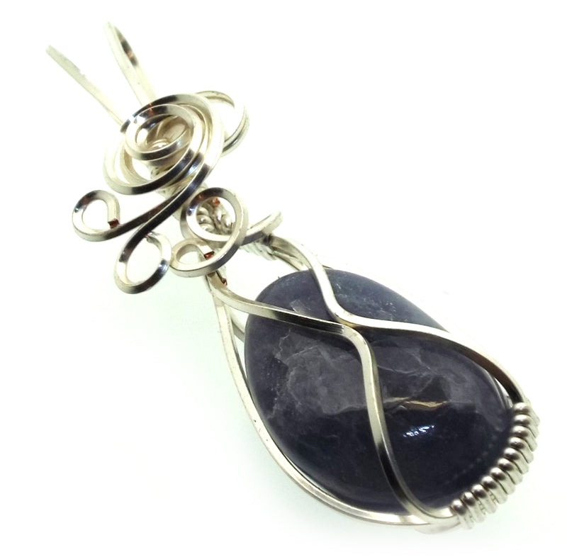 Iolite Gemstone Silver Plated Wire Wrapped Pendant 16